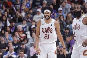 本场比赛阿伦时隔10场迎来复出,骑士本场首发为:哈登、米切尔、梅里尔、莫布里、阿伦。