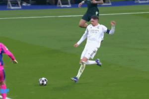 体育资讯03月12日讯 欧冠1/8决赛首回合,皇马对阵曼城。第20分钟,巴尔韦德过掉多纳鲁马破空门,回放看,多纳鲁马出击后有一个收手动作,可能是担心自己在禁区外。